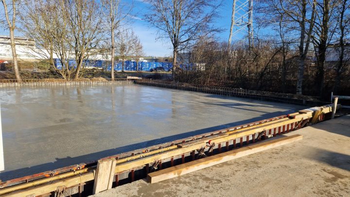 Weiterentwicklung beim Hallenbau in Munderkingen: Hallenerweiterung Ost: Bewehrung der Bodenplatte Betonieren der Bodenplatte