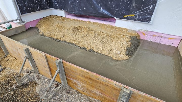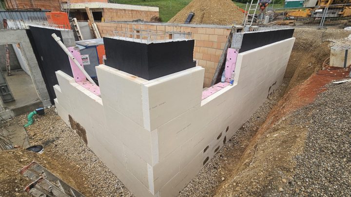 Neues auf der Baustelle in Schelklingen: Mauern der Kellerzwischenwände Dämmung der Kelleraußenwände Einschalen der Decke Verlegen der Filigrandecke UG Bewehrung der Filigrandecke UG Betonieren der Decke vom UG Mauern der Außenwände vom EG