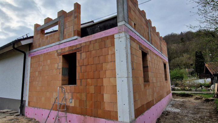 Weiteres beim Wohnhausneubau im Rosengarten: Abdichtung Kellerwände Mauern Zwischenwände im UG Dämmung Kellerwände Verfüllen Arbeitsräume Einschalen Ortbeton-Decke über UG Bewehrung der Ortbeton-Decke über UG