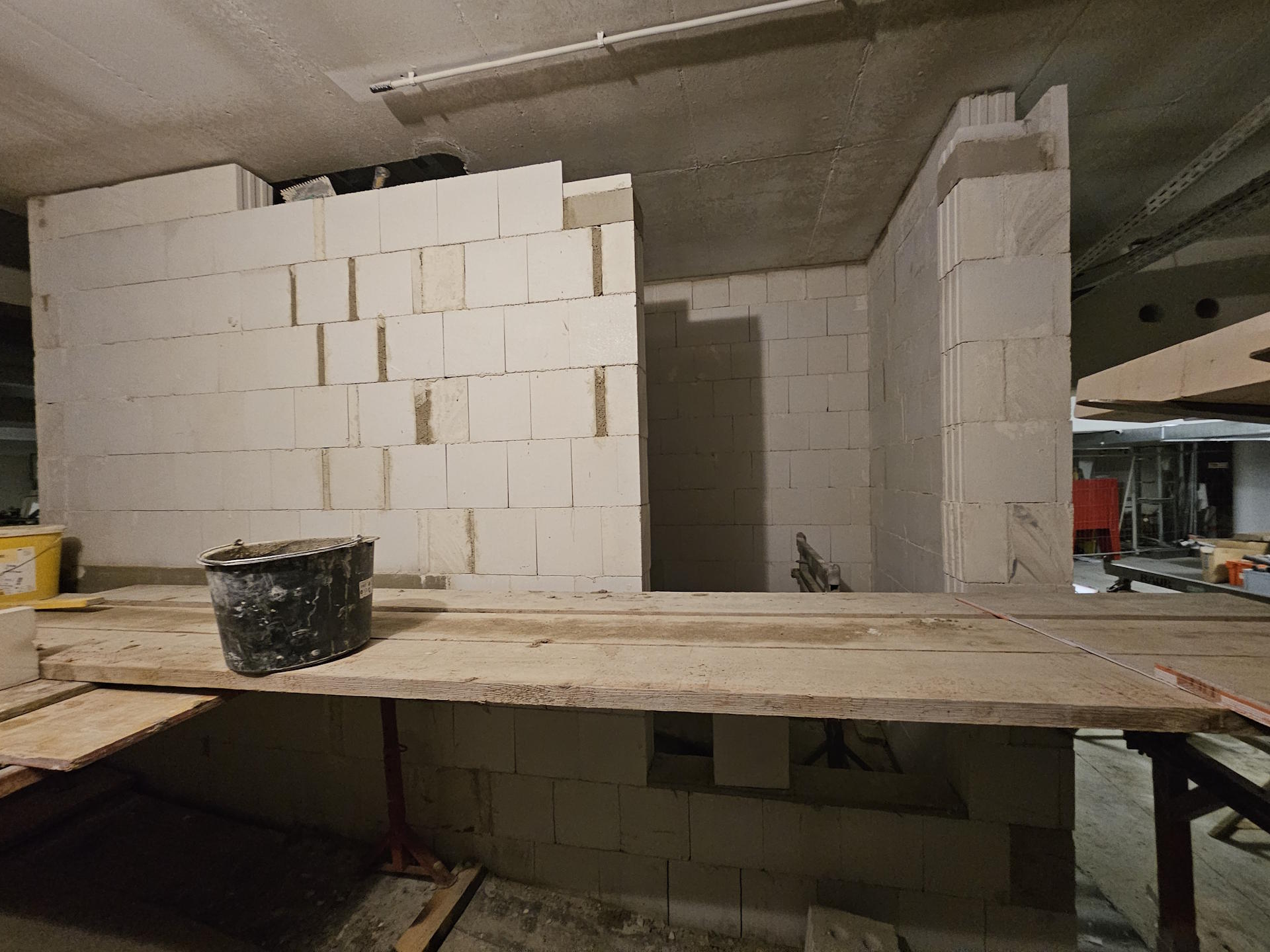 Ausbau von Betonplatten Abdichtung der Aufzugsunterfahrt Herstellen der Aufzugswände aus Kalksandsteinen