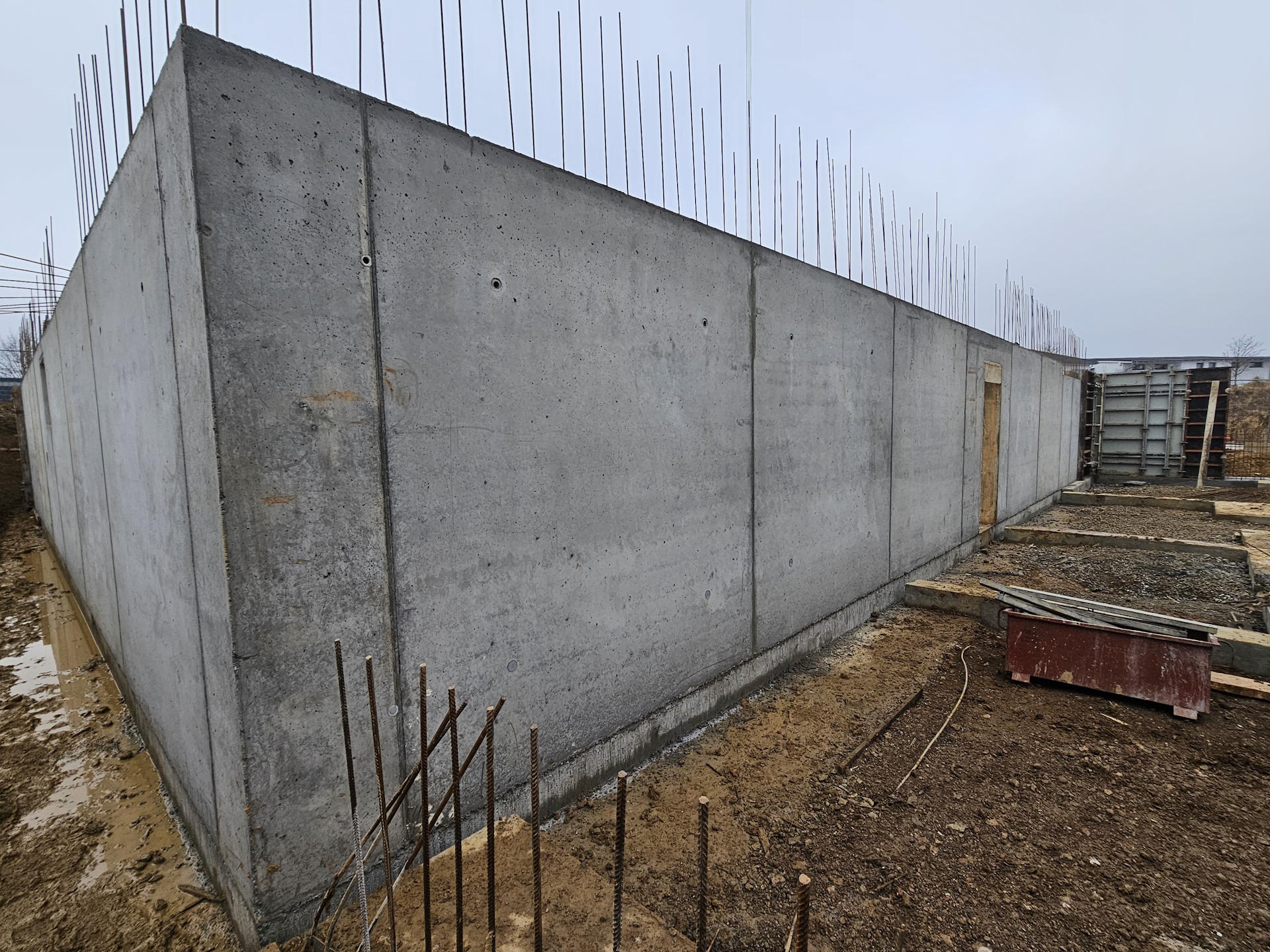 Fortschritt beim MFH in Riedlingen: Kelleraußenwände Einschalen und bewehren der Kellerinnenwände Kelleraußenwände für die Abdichtung vorbereiten