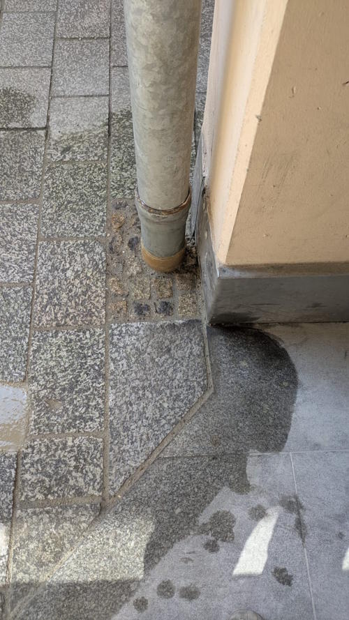 Pflasterarbeiten - freilegen von defektem Fallrohr und Wiedereinbau von Pflaster nach Austausch Fallrohr: